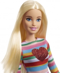 Duhové proužky a třpytivé srdíčko na topu dodávají panence ikonický look „Malibu“ pro každodenní módní inspiraci.