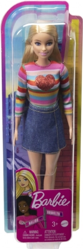 Panenka Barbie „Malibu“ přináší dětem jejich oblíbené momenty ze seriálu Barbie It Takes Two a inspiruje k novým příběhům. Díky barevnému topu s třpytivým srdíčkem, džínové sukni se žlutým prošitím a pohodlným teniskám je připravena na každé dobrodružství.