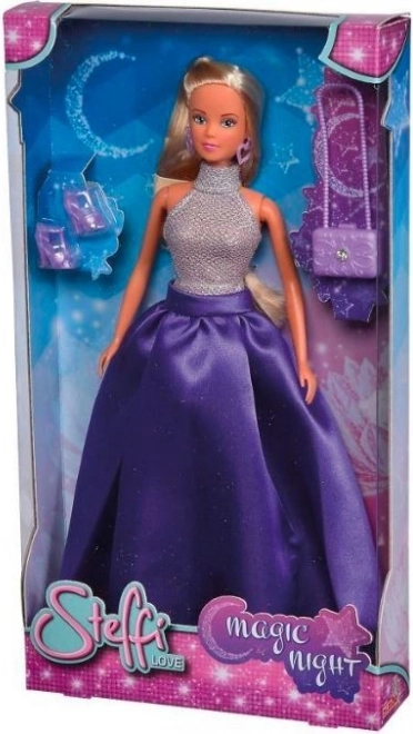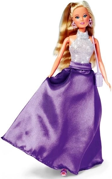Panenka Steffi v třpytivých stříbrno‑fialových šatech okouzlí každou malou stylistku. Má dlouhé blond vlasy, modré oči a srdíčkové náušnice. Díky pohyblivým rukám, nohám a hlavě snadno zaujme dynamické pózy a inspiruje k tvorbě vlastních příběhů. V balení najdete i fialové lodičky a ladící kabelku.