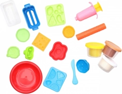 Sada obsahuje praktické formičky, váleček a nožík, díky nimž děti snadno vytvarují tousty, náplně i ozdoby. Ideální pro první kuchařské pokusy z modelíny.