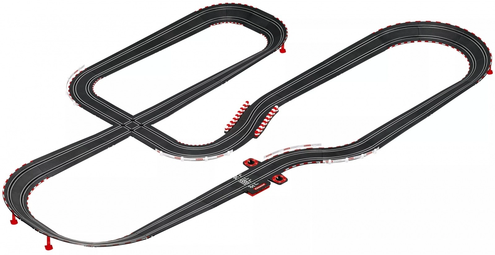 - 2× auto, rovinky, klopené zatáčky, křižovatka, zatáčky, šikana, podpěry, mantinely, spojky