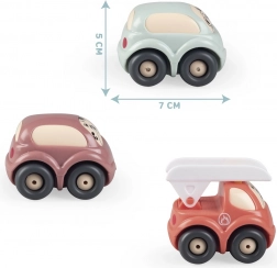 Dvě městská autíčka se zvířecími obličeji a hasičské auto s žebříkem jsou nárazuvzdorná a připravená na každodenní hraní.