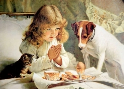 Detailní motiv s dívkou a pejskem ve velikosti 30 × 40 cm se po dokončení krásně třpytí a vynikne v rámu v každém interiéru.