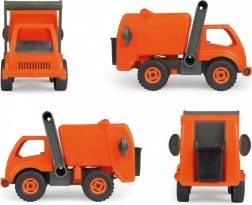 Ekologické popelářské auto pro děti od 2 let vyrobené z recyklovaného plastu s příměsí dřeva. Je plně mechanické, má odklopitelnou kabinu a pojistku proti nechtěnému vyklopení. Díky odolnému provedení zvládne hru doma i venku. Rozměry: 31 × 15 × 19 cm.