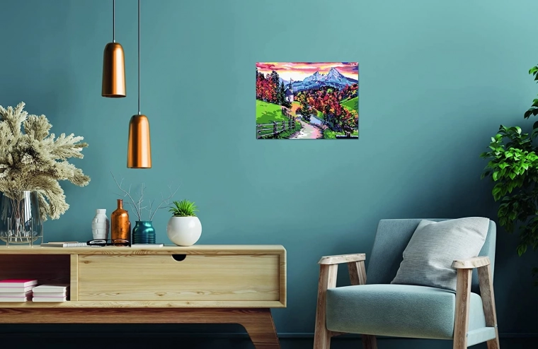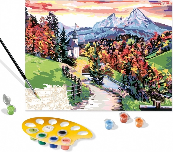 Sada CreArt – krásná Bavorská krajina vás zavede do malebného světa hor, kapliček a podzimních stromů. Díky systému malování podle čísel lehce zvládnete vytvořit působivý obraz s bohatými barvami a výraznou hloubkou. Každá barva má své číslo, takže postup je jasný, plynulý a zábavný.