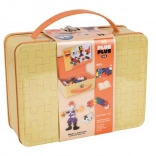 Odolný kovový lunchbox s uchem a západkou chrání kostičky a zajišťuje pořádek. Snadné přenášení i skladování – stavebnice je vždy připravená ke hře.