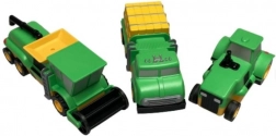 Jednotlivé díly se díky magnetům rychle a pevně propojí. Děti snadno přestaví traktor, kombajn i náklaďák podle vlastní fantazie.