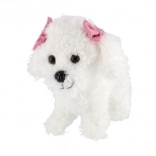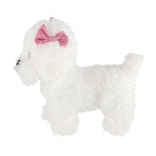Roztomilý bílý plyšový pejsek o velikosti 21 cm je ideální první kamarád pro miminka i větší děti. Je vyroben z extra měkkého a hebkého plyše, má jemné růžové mašličky na ouškách a láká k mazlení od rána do večera. Perfektní pro klidné usínání a uklidňující objetí kdykoli během dne. Vhodné již od 0 měsíců.