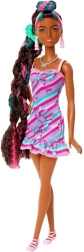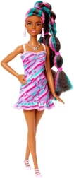 Nechte děti objevovat svět módy a vlasové kreace s panenkou Barbie Totally Hair inspirovanou kultovním modelem z 90. let. Panenka má super dlouhé, krepované vlasy s růžovými a tyrkysovými proužky a nosí přiléhavé šaty s potiskem motýlků. Díky pestré výbavě doplňků je styling zábavný a snadný.