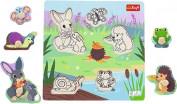 Objevte hravé a bezpečné dřevěné puzzle se zvířátky z louky, ideální pro nejmenší od 18 měsíců. Díky dřevěným úchytům se dílky snadno drží, barevná grafika láká ke hře a černobílá předloha v podložce usnadňuje správné umístění. Hračka rozvíjí jemnou motoriku, koordinaci oko–ruka a vnímání tvarů.