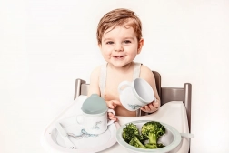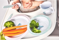 Protiskluzová guma na příborech zajišťuje pevné uchycení na stole, což je ideální pro malé děti, aby mohly samy jíst.
