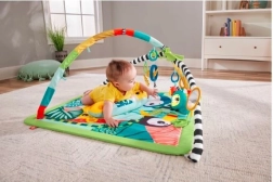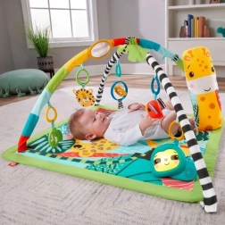 Vzdělávací hrací podložka 3 v 1 „Tropický les“ je ideální pro děti od novorozence až po starší věk. Měkká podložka poskytuje pohodlný prostor pro hraní a šest zavěšených hraček stimuluje smyslovou a motorickou dovednost. Při hře na bříšku mohou nasměrované oblouky přivést hračky do dosažitelné blízkosti, zatímco polštář ve tvaru žirafy nabízí podporu.