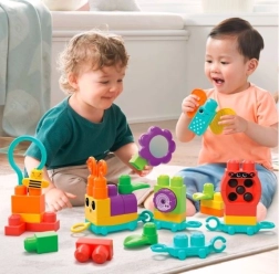 Stavebnice obsahuje 30 velkých kostek, z toho několik speciálních dílů, které jsou navrženy tak, aby stimulovaly děti ve věku od 1 do 3 let. Zahrnuje osm senzorických funkcí pro rozvoj hmatového, zrakového a sluchového vnímání. Kostky jsou kompatibilní se všemi hračkami Mega Bloks, což umožňuje rozšiřování možností herní aktivity.