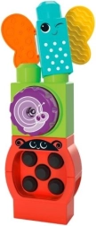 Hračka zahrnuje osm senzorických funkcí, které podporují rozvoj hmatového, zrakového a sluchového vnímání malých dětí.