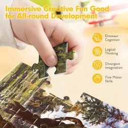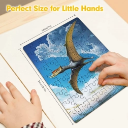 Oboustranné puzzle ve vejci z kolekce DINO EGGs Collection od CubicFun nabízí dvojitou zábavu. Na jedné straně najdete ilustraci pterosaura, zatímco na druhé abstraktní vzor s dinosauřími fosiliemi.