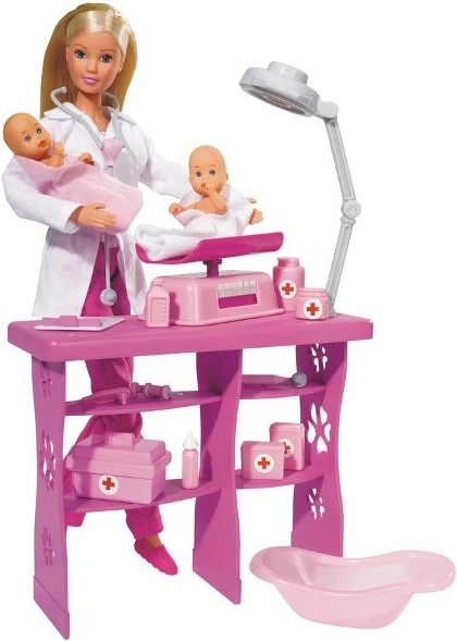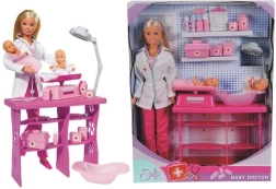 Panenka od německé značky Simba z řady Steffi Love je oblečena v moderním outfitu s lékařským pláštěm, který podtrhuje její profesionální vzhled. Dvojčátka jsou zabalená v měkkých plenách a připravena na vyšetření, krmení i koupel. Díky bohatému příslušenství děti snadno napodobí skutečné pediatrické procedury.