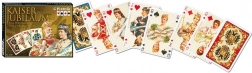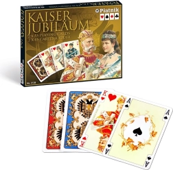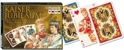 Karty Cesarskie 'Kaiser' od renomované společnosti Piatnik vás okouzlí svým klasickým designem, který byl oblíbený již od předválečných let v oblasti Haliče. Tento set obsahuje dva luxusní balíčky karet, poskytující 54 plastifikovaných karet v každém balíčku o gramáži 310 g/m² a rozměrech 58 x 89 mm. Na averzu karet naleznete portréty členů císařské rodiny Habsburků, zatímco reverz nese erb tohoto rodu.