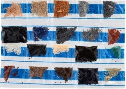 Plátno je potaženo lepidlem a překryté fólií. Kamínky nanášíte po postupném odhalování částí plátna, abyste zabránili znečištění lepicí vrstvy.