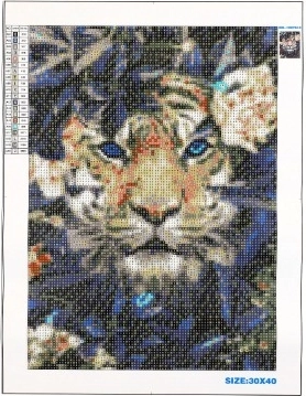Vytvořte krásný obraz Tygra v květinách s diamantovým leskem. Obrázek je kreativním projektem s jasným pokynem a barevným kódem pro snadné dokončení.
