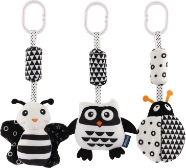 Tato černobílá závěsná plyšová hračka je navržená pro miminka od 0 měsíců. Vysoký kontrast barev přirozeně přitahuje dětský zrak, podporuje soustředění a první vizuální dovednosti. Měkké materiály a jemné zvukové podněty přinášejí bezpečné a uklidňující smyslové vjemy.