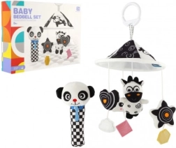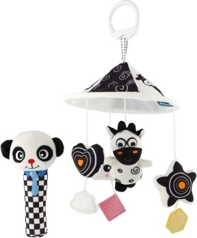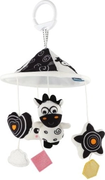 Tento černobílý kolotoč nad postýlku byl navržen s ohledem na přirozený vývoj novorozenců. Vysoký kontrast barev, výrazné tvary a jemné třpytivé prvky pomáhají trénovat zrakové vnímání a soustředění. Měkké závěsné hračky poskytují bezpečnou a uklidňující stimulaci během bdělých chvilek.