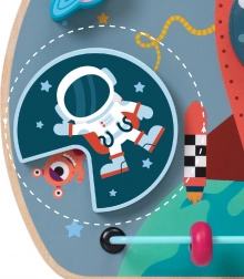 Raketa s planetami a hvězdami přirozeně podněcuje zvědavost a vybízí děti k objevování jednotlivých prvků – od labyrintu po otáčecí kolečka.