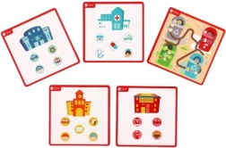Na městské straně děti vedou vozidla a postavy k nemocnici, hasičům či policii. Učí se chápat dopravní situace, trénují orientaci a plánování pohybu.