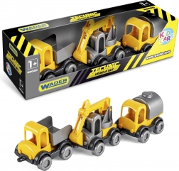 Objevte zábavnou sadu tří stavebních autíček KID CARS od značky WADER, ideální pro nejmenší od 12 měsíců. Set obsahuje sklápěč, jeřáb a cisternu, které podporují rozvoj fantazie a kreativity. Odolné plastové provedení a kompaktní velikost 10 cm jsou perfektní pro malé dětské ručičky.