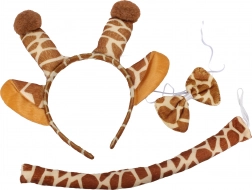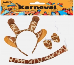 Hledáte rychlou a efektní karnevalovou proměnu? S tímto setem na téma žirafa získáte vše potřebné v jednom. Čelenka s oušky, mašlička kolem krku a ocásek vytvoří hravý vzhled, který zaujme na první pohled. Doplněk je skvělý pro děti i dospělé a hodí se k šatům, tričku i overalům.