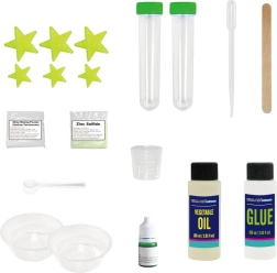 Tato kreativní sada je ideální pro děti i začátečníky – během pár minut vykouzlíte parádní svítící sliz. Stačí smíchat slizové lepidlo se svítícím práškem, přidávat aktivátor po kapkách a míchat do požadované konzistence. Čím více aktivátoru, tím tužší sliz – snadno si tak přizpůsobíte hustotu podle svých představ.