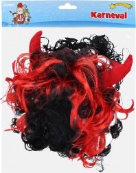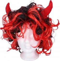 Stylová karnevalová paruka s červenými rohy a výraznými červenými vlasy, mezi nimiž prosvítají i černé prameny. Ideální pro dětské i dospělácké kostýmy čerta. Výrazný vzhled, snadné nasazení a skvělý doplněk na Mikuláše, karneval i párty. Vhodné od 6 let.