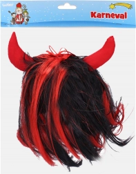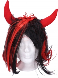 Vytvořte během chvilky autentický pekelný look. Tato paruka kombinuje husté černé vlasy s výraznými červenými prameny a lehké textilní rohy, které drží tvar a dodají kostýmu ten správný šmrnc.
