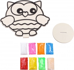 Dřevěný obrázek s výraznými obrysy usnadňuje vyplňování a vede děti krok za krokem k krásnému výsledku. Ideální pro první tvořivé projekty.
