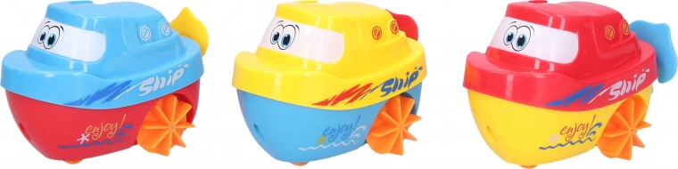 Tato barevná plastová lodička přináší dětem radost z vodních her. Díky jednoduchému natahovacímu mechanismu se sama pohybuje po hladině a motivuje děti k objevování a hře ve vodě. Vhodná do vany i bazénu, potěší svým hravým vzhledem s velkýma očima.