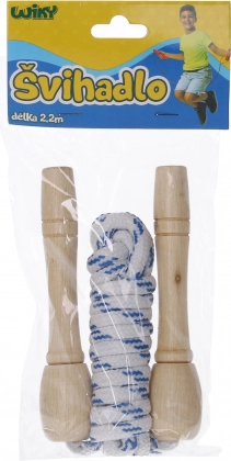 Dřevěné švihadlo s ergonomickými držadly, dlouhé 220 cm. Nabízí dvě barevné varianty: modro-bílé a červeno-bílé pro stylový trénink.