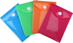 Praktická složka s drukem o rozměrech 11,5 × 8 cm udrží drobné dokumenty a školní či kancelářské potřeby přehledně pohromadě. Je vyrobena z měkkého plastu, je snadno omyvatelná a díky zapínání na druk bezpečně ochrání obsah před vypadnutím a zašpiněním.