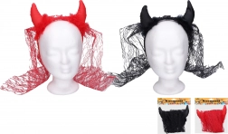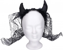 Dodejte svému převleku pekelný šmrnc s černými čertovskými rohy se závojem. Praktická čelenka zajišťuje pohodlné a bezpečné držení ve vlasech, zatímco elegantní závoj dodá tajemný a výrazný efekt. Skvělé pro karneval, Halloween, firemní večírky i školní akce.