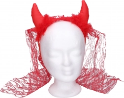 Upozornění: Není hračka. Vhodné jako kostýmní doplněk pro dospělé. Obsah balení: 1× čelenka s rohy a závojem.