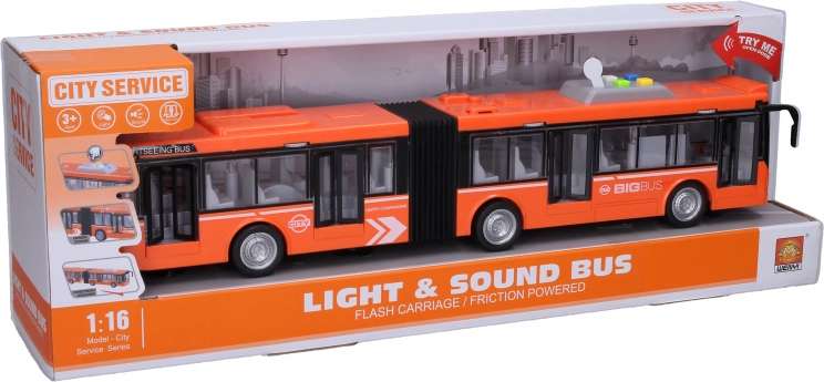 Velký autobus potěší realistickými detaily a snadným ovládáním. Setrvačník zajišťuje plynulou jízdu bez nutnosti baterií pro pohon, zatímco světelné a zvukové efekty aktivujete čtyřmi tlačítky na střeše. Děti si užijí spoustu zábavy při hře na řidiče a cestující.