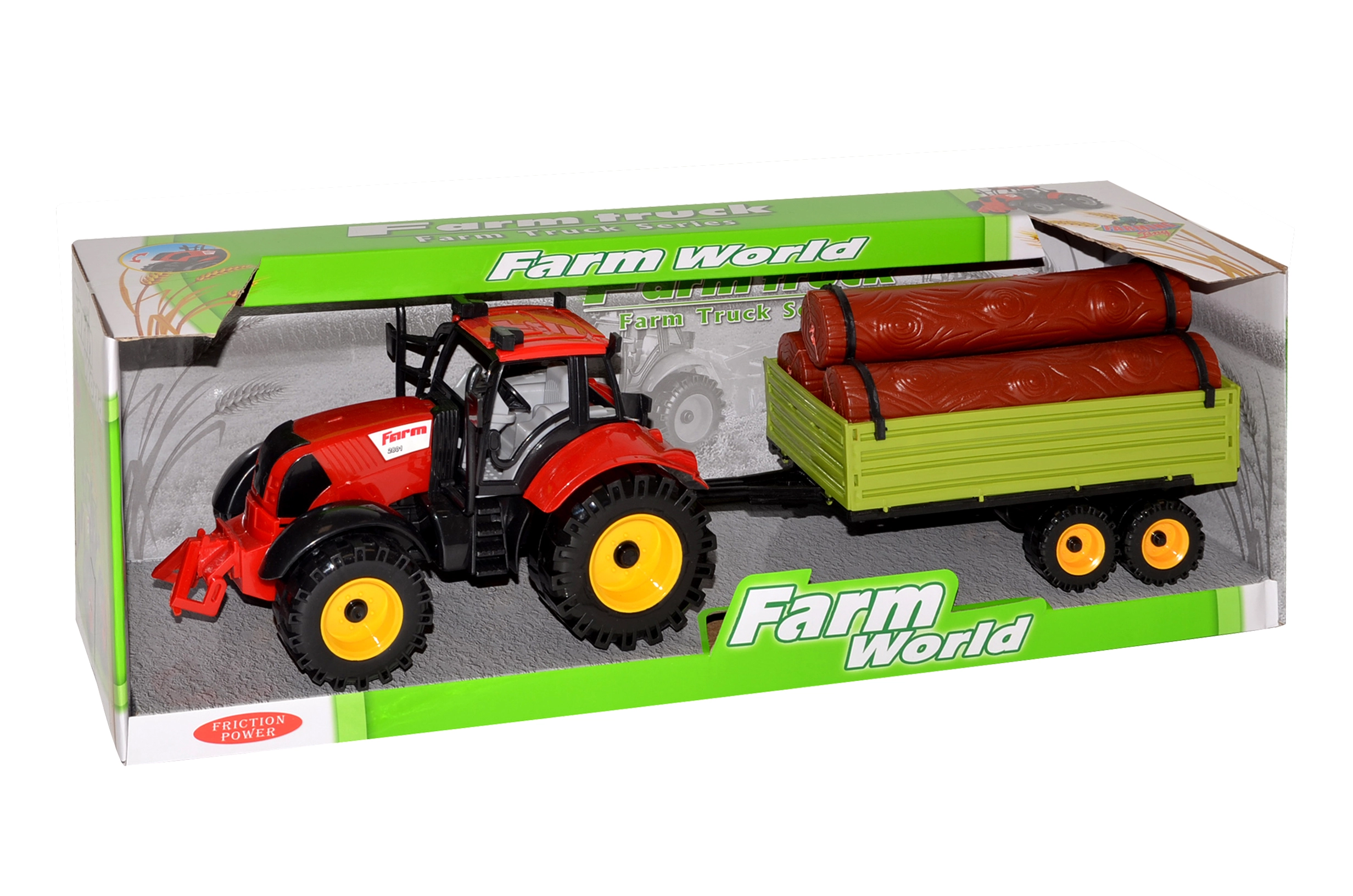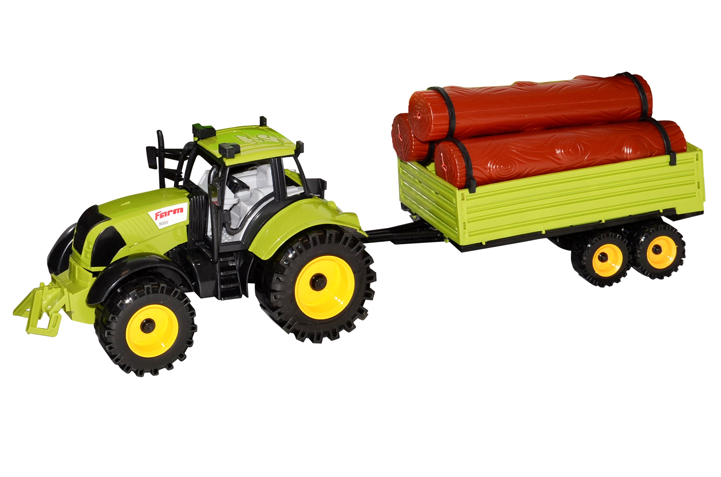 Traktor s vlečkou a kládami je ideální hračkou pro malé farmáře a lesníky. Díky realistickému vzhledu, výrazným barvám a odolnému plastovému provedení děti snadno zapojí fantazii a vytvoří si vlastní svět farmářských dobrodružství. Součástí je přívěs s naloženými "kládami", které lze převážet, nakládat a vykládat.