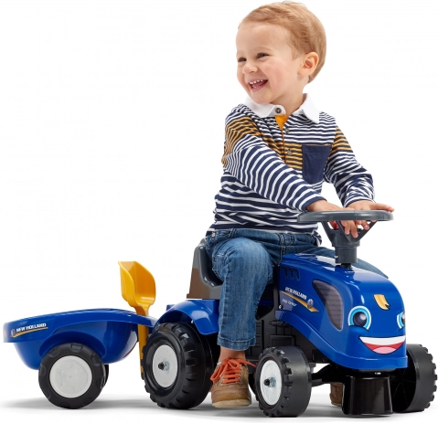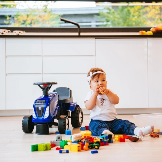 Malý traktor NEW HOLLAND pro děti od 12 měsíců podněcuje fantazii i pohyb. Díky lehké a odolné plastové konstrukci se snadno ovládá a je bezpečný a stabilní pro první zkušenosti s jízdou. Odnímatelný přívěs umožní převážet hračky, kostky i poklady ze zahrady.