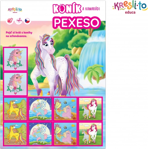Pexeso koníci a kamarádi přináší zábavu pro celou rodinu. Pomáhá rozvíjet paměť a soustředění vašich dětí, zároveň podporuje jejich kreativitu díky omalovánkám a pracovním sešitům.