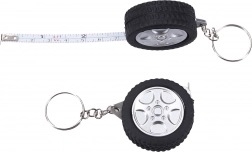 Praktická klíčenka ve tvaru kola s integrovaným metrem o délce 1 metr je perfektní doplněk pro každého, kdo potřebuje mít metr vždy po ruce.