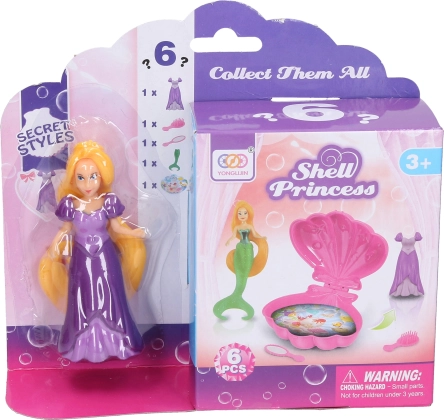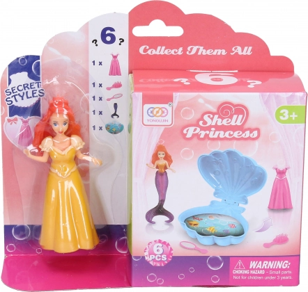Objevte kouzelný svět pod hladinou s roztomilou hračkou mořská víla s mušlí o velikosti 9,5 cm. Sada obsahuje vílu, otevírací mušli, drobné šatičky, zrcátko a hřeben. K dispozici jsou 3 barevné varianty mušle – žlutá, modrá a fialová.