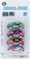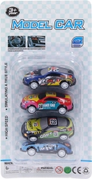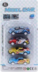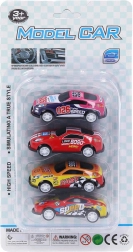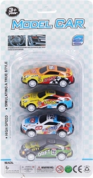 Objevte zábavu s naší sadou čtyř autíček, každé o velikosti 6,5 cm, která se pohybují na volných kolech.