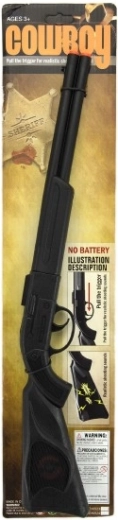 Kovbojská hračka pro malé dobrodruhy – černá plastová puška o délce 57 cm s typickým klapacím efektem. Ideální pro hraní na western, rozvoj fantazie a akční dobrodružství. Lehká konstrukce, snadné držení a bezpečná hra pro děti od 3 let.