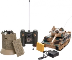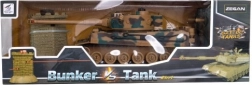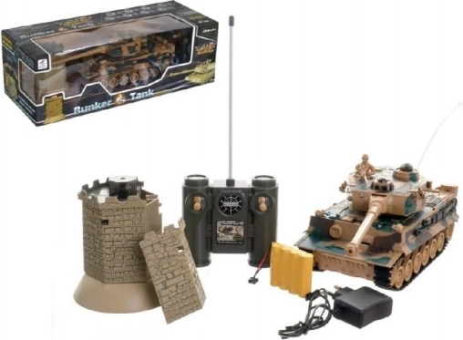 Realistický RC tank s délkou 35 cm doplněný o bunkr promění každý pokoj v bitevní zónu pro malou armádu. Nabízí otáčivou věž, světelné a zvukové efekty a dobíjecí akupack pro delší jízdu. Ovládání na frekvenci 40 MHz a odolné plastové provedení jsou ideální pro fantazijní hru dětí od 8 let.