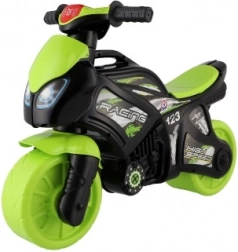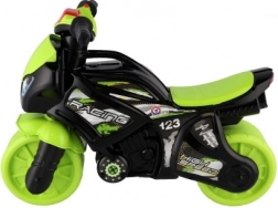 Atraktivní zeleno-černá barevná kombinace a nápisy 'Racing' podtrhují sportovní vzhled motorky.