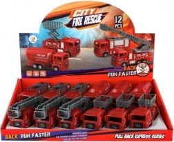 Auto hasiči plast 11cm na zpětné natažení 4 druhy 12ks v boxu