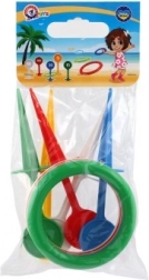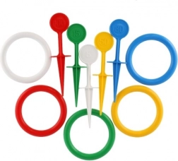 Jednoduchá pravidla: zapíchněte kolíky do země a házejte na ně barevné kroužky. Kdo se trefí, získává body! Díky jasným barvám a různorodosti kolíků i kroužků je hraní lehce rozpoznatelnou a poutavou aktivitou.